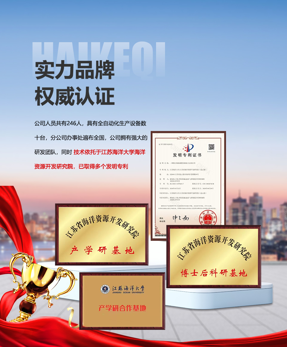 公司拥有强大的研发团队,同时技术依托于江苏海洋大学海洋资源开发研究院,已取得多个发明专利,始终引领高端水溶肥市场。
